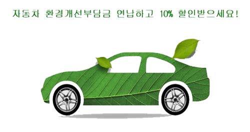 이상훈 서울시 환경정책과장은 “환경개선부담금은 원인자 부담원칙에 따라 대기오염물질을 많이 배출하는 경유차에 부과하고 있으며, 연납신청을 통해 많은 분들이 감면혜택을 받으시길 바란다”고 말했다.