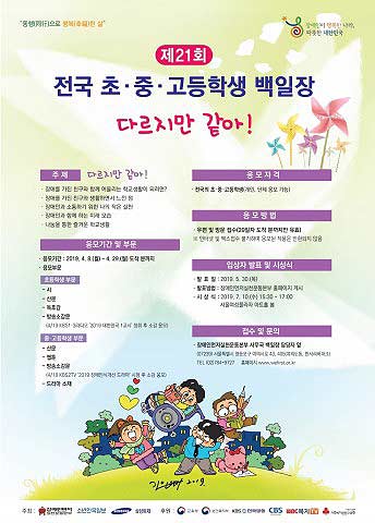 장애인먼저실천운동본부(이사장 이수성)가 제39회 ‘장애인의 날’을 맞이하여 ‘장애’에 대한 올바른 인식 형성 및 공동체 의식 함양을 위하여 제21회 전국 초·중·고등학생 백일장을 개최한다.