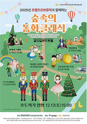 12월 13일(토)에는 꿈의숲아트센터 상주단체 사단법인 프렌즈 오브 뮤직(Friends of Music)이 선보이는 숲속의 동화 클래식 시리즈의 마지막 작품, 차이코프스키 <호두까기인형>이 무대에 오른다. 이번 공연은 대표 교향발레를 새로운 시각으로 재구성해 어린이부터 성인까지 모든 관객이 자연스럽게 몰입할 수 있도록 구성했다.