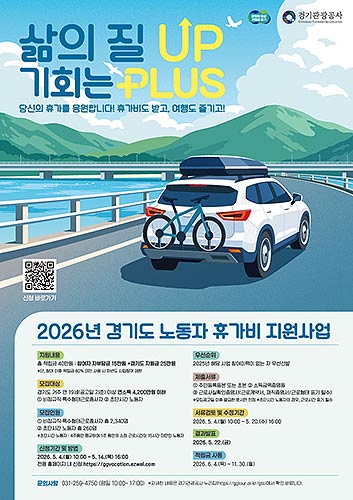 지원 방식은 노동자가 스스로 15만 원을 적립하면 경기도가 25만 원을 추가로 매칭 지원해 총 40만 원 상당의 휴가비를 마련해 주는 형태다. 선정된 노동자는 전용 온라인몰에서 적립금을 활용해 숙박권, 관광지 입장권, 문화예술 체험 등 다양한 맞춤형 휴가 상품을 자유롭게 이용할 수 있다.