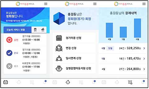 한편, 아이돌봄 서비스를 쉽고 편리하게 스마트폰으로 이용할 수 있도록 모바일 앱 서비스를 도입하여, 간편 신청 기능과 아이돌보미 만족도 평가 등 사용자별 주요 이용 기능을 개선할 계획이다.
