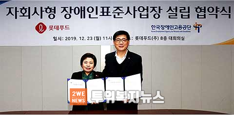 한국장애인고용공단과(이사장 조종란, 이하 ‘공단’) 롯데푸드(주)(대표이사 조경수)는 장애인 일자리 창출을 위해 ’;자회사형 장애인표준사업장’ 설립을 위한 협약을 체결하였다.