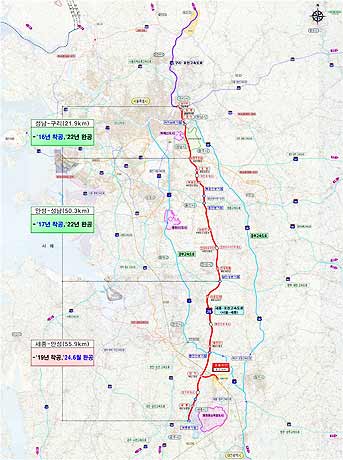 * 안성∼성남 구간 : ʼ17년 착공, 성남∼구리 구간 : ʼ16년 착공