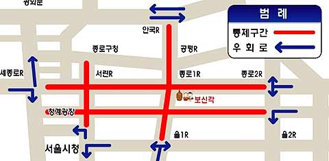 구간 : 종로(세종대로R↔종로2가R), 우정국로(을지로1가R↔안국R), 청계천로(청계광장↔청계2가R), 무교로(시청뒷길R↔종로구청)