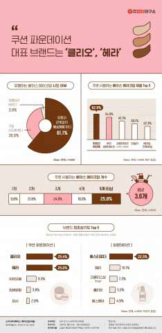 - 베이스 메이크업 시 약 3.6개 제품을 사용하고, 일반 파운데이션보다 쿠션 선호