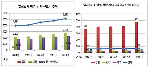 - 2014~2018년 ‘알레르기 비염(J30)’환자 연평균 2.6% 증가
