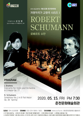 춘천시립교향악단(지휘 이종진)의 제142회 정기연주회 ‘저명작곡가 교향곡 시리즈 I – 로베르트 슈만’이 오는 5월 15일(금) 저녁 7시 30분 춘천문화예술회관에서 개최된다.