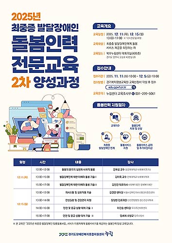 ‘최중증 발달장애인 전문돌봄인력 키운다’ 누림센터, 12월 2차 양성과정 운영