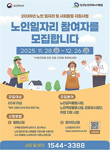 노인이 행복한 진짜 대한민국, 노인일자리 사업에 참여하세요!