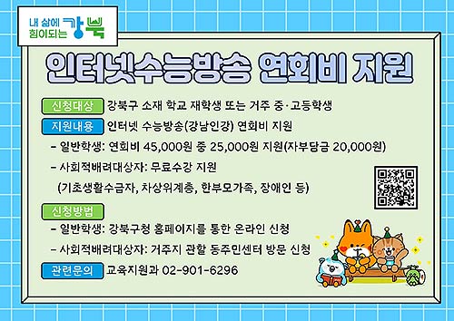 강북구, 온라인 수능 강좌 수강료 지원…예비 중학생도 참여 가능