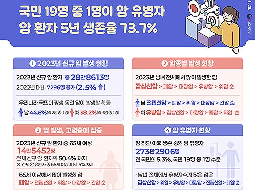 암환자 273만 명 시대, 10명 중 7명은 5년 이상 생존