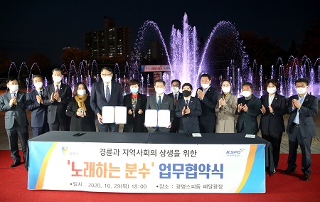 이날 개장식에서는 국민체육진흥공단과 노래하는 분수 운영을 위한 업무협약을 체결했다.