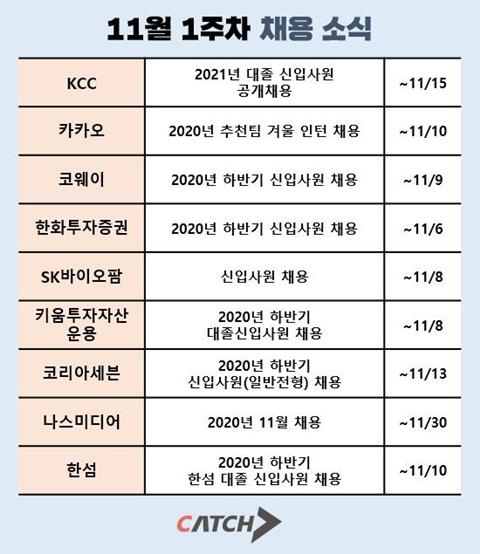 | 캐치가 공개한 11월 1주차 알짜 계열사 채용 속보 |