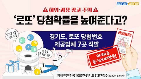 실제 확률에 변함이 없음에도 당첨확률이 높은 번호를 추출·조합했다는 식의 광고로 소비자를 현혹하고, 계약 해지 불가 등의 불공정약관을 적용한 로또 당첨번호 정보 제공업체에 대해 경기도가 직접 제재에 나섰다.