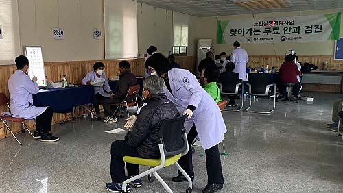 이번 검진에서는 코로나19 대응 지침 준수 하에 안과전문의로 구성된 검진팀이 문진 및 시력 측정, 안압 검사, 굴절검사와 세극등현미경검사 등을 실시했으며 검진 후 약품 및 돋보기도 대상자에게 지원했다.