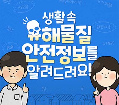 식품의약품안전처(처장 김강립)는 오는 16일 생활 속에서 노출되기 쉬운 카드뮴, 폴리염화비페닐(PCBs), 프탈레이트 등 유해물질에 대한 안전정보를 쉽게 알 수 있도록 ‘유해물질 간편정보지’를 제공한다고 밝혔습니다.