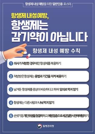 질병관리청은 항생제 내성 예방에 대한 수칙 준수 및 실천을 돕고자 홍보물을 제작하여 질병관리청 소셜 채널 및 누리집(홈페이지)을 통해 온라인 등으로 게재할 예정이다(11월 셋째주).