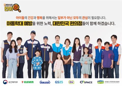 한편, 보건복지부와 아동권리보장원(원장 윤미혜)은 아동학대 예방기념주간을 계기로, 한국편의점산업협회(회장 최경호), 실시간 재생 서비스 기업 ‘왓챠(WATCHA)’와 협업을 통해 아동학대 예방 홍보를 전개한다.
