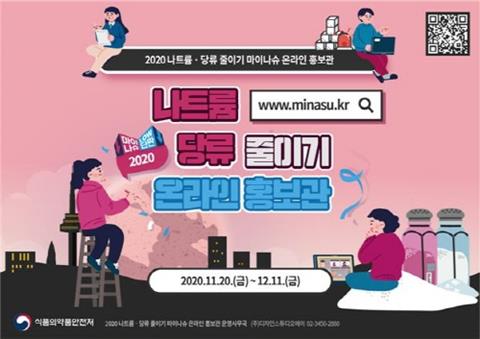 식품의약품안전처(처장 김강립)는 전 국민이 참여하는 나트륨·당류 줄이기 행사의 일환으로 20일부터 12월 11일까지 '나트륨·당류 줄이기 마이나슈 온라인 홍보관(www.minasu.kr)'을 운영한다고 밝혔다.