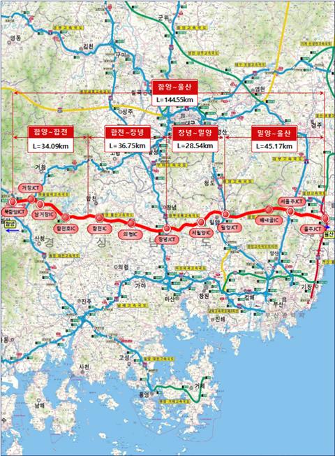 고속국도 제14호 함양울산선(145km) 중 밀양~울산 구간은 경남 밀양시와 울산광역시 울주군을 잇는 총 길이 45km, 왕복 4차로 고속도로를 지난 ‘14년 착공하여, 총 사업비 2조 1,436억 원을 투입, 7년 만에 개통하게 되었다.