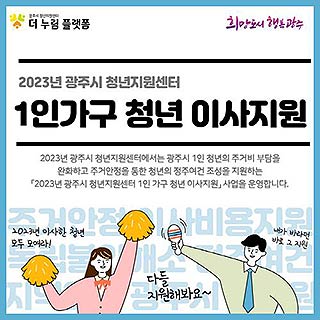 광주시 청년지원센터는 청년의 주거비 부담을 완화하고 주거 안정과 정주 여건 조성을 위해 오는 3월부터 '1인 청년 가구 이사지원' 사업을 시행한다고 27일 밝혔다.