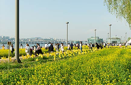 반포 서래섬을 비롯한 광나루, 양화, 난지한강공원의 전원풍경단지에서 노란 유채꽃을 만날 수 있을 것으로 기대된다. 총면적 27,300㎡에 유채씨를 파종하여 노란 유채 물결을 감상할 수 있으며, 특히 서래섬은 봄의 전령 유채꽃 명소로 많은 시민의 사랑을 받고 있다.
