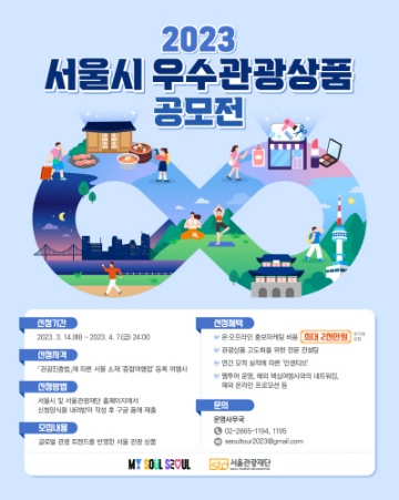 서울시와 서울관광재단(대표이사 길기연)은 글로벌 관광시장 회복에 따라, 서울 관광 재도약을 위한 '서울시 우수관광상품 공모전'을 개최한다.
