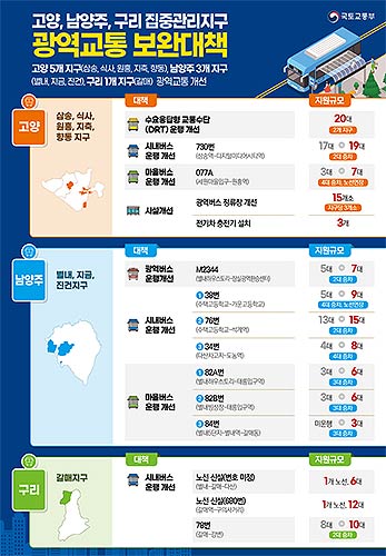 이에, 별내지구와 지금‧진건지구를 중심으로 광역버스, 시내‧마을버스 운행을 대폭 확대하는 광역교통 단기 보완대책을 마련하였다.