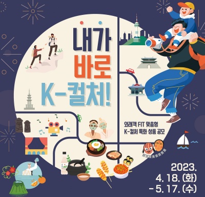 문화체육관광부(장관 박보균, 이하 문체부)는 한국관광공사(사장 김장실, 이하 관광공사)와 함께 4월 18일(화)부터 5월 17일(수)까지 외국인 관광객을 사로잡을 ‘K-컬처 특화 관광상품’을 공모한다.