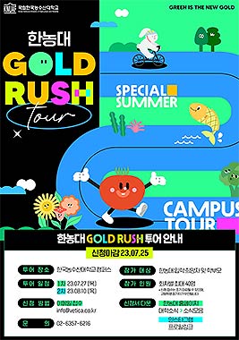 한국농수산대학교(이하 한농대, 총장 정현출)는 대학 교육 및 생활환경을 미리 체험할 수 있는 ‘골드러시 캠퍼스 투어’를 7월 27일(목), 8월 10일(목) 이틀 동안 실시한다. 차세대 농어업 인재가 되고 싶은 학생 및 학교생활이 궁금한 학부모 등은 누구나 신청할 수 있다.