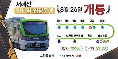 이날 개통식에는 이동환 고양시장을 비롯해 국회의원과 당협위원장, 도의원, 시의원, 공사관계자, 일산 주민 등 200여 명이 참석할 예정이다.