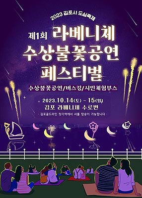 김포시(시장 김병수)는 오는 10월 14일 저녁 7시에 라베니체에서 도심축제의 일환으로 제1회 라베니체 수상불꽃공연 페스티벌을 개최한다.