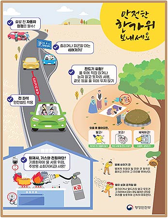 한편, 추석에는 평소보다 많은 명절음식 준비 등으로 가정 내 화기 사용이 늘면서 화재 예방에도 주의하여야 한다.