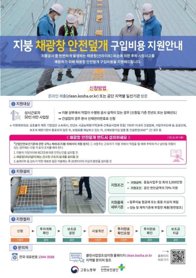 점검 시에는 ▴3대 사고유형 · 8대 위험요인에 대한 안전조치 여부, ▴위험성평가 실시 여부, ▴작업전 안전회의(TBM) 등 20대 안전강령 이행 여부 등을 일제 점검한다. 특히, 지붕공사 관련 주요 사고사례, 핵심안전수칙을 배포하면서, 채광창 안전덮개 구입비용 지원사업도 함께 안내한다.