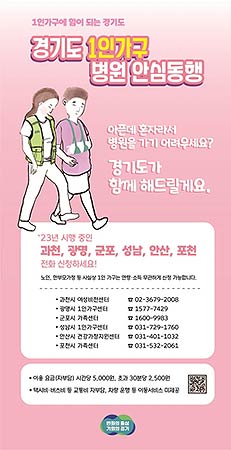 경기도가 거동이 불편하거나 질병 등으로 홀로 병원을 가기 어려운 도민을 대상으로 병원 동행·접수·수납 등을 지원하는 '1인 가구 병원 안심 동행 서비스' 대상 지역을 기존 5곳에서 과천을 추가해 6곳으로 늘렸다고 1일 밝혔다.