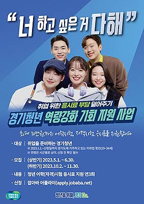 경기도가 미취업 청년에게 어학·자격시험 응시료를 30만 원까지 지원하는 '경기청년 역량강화 기회 지원 사업' 하반기 모집을 오는 11월 30일 마감한다며 신청을 당부했다.