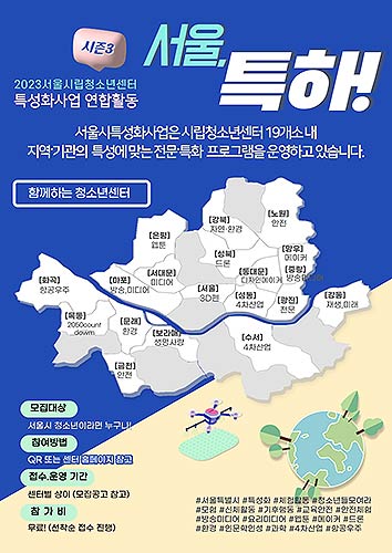 서울시 전역에는 총 21개소의 서울시립청소년센터가 있으며, 이번에는 19개소에서 특성화 사업의 대표 프로그램을 운영한다. 현재 서울시는 지역별 여건을 반영해 센터별로 ‘1센터 1특성화 사업’을 기획·운영하고 있으며, 센터별 특징적이고 전문성 있는 프로그램을 연중 제공한다.