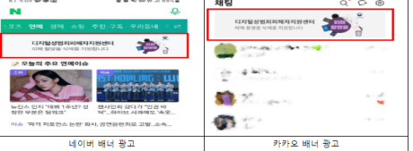 아울러, 디지털 성범죄 피해 상담, 불법촬영물 삭제 지원 및 수사·법률·의료 연계 등을 지원하는 디지털성범죄 피해자지원센터 안내를 위해 카카오, 네이버 등 첫 화면에 온라인 배너 광고를 실시한다.