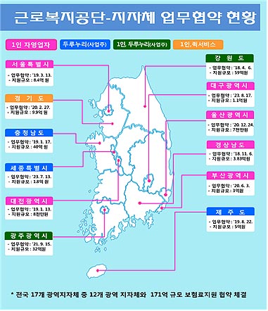 공단은 2018년부터 전국 17개 광역단체 중 13개 광역단체 및 8개 기초단체와 업무협약을 체결해 보험료를 지원함으로써 사회보험 사각지대 해소와 소상공인 보험료 부담완화에 힘쓰고 있다.