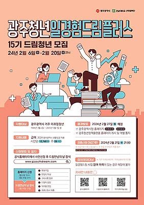 광주시는 일경험에 참여할 제15기 드림청년 430명을 모집한다. 참여를 원하는 청년은 20일까지 광주청년 일경험드림 누리집에서 사전 신청 후 '드림만남의 날'에 상담과 면접을 진행하고, 21일 밤 9시까지 누리집에 최종 신청서를 제출하면 된다.