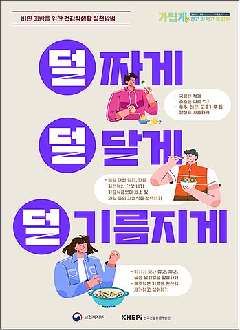 먼저, 코로나19 대유행(팬데믹)을 거치며 증가한 비만율을 낮추기 위한 노력으로 ‘덜 짜게, 덜 달게, 덜 기름지게’를 주제로 한 건강 식생활 캠페인을 3월 4일(월)부터 24일(일)까지 진행한다. 저염·저당·저지방 식생활을 인증하는 사진과 조리법 공유 등을 통해 누구나 참여할 수 있으며, 자세한 내용은 한국건강증진개발원 공식 인스타그램을 통해 확인할 수 있다.