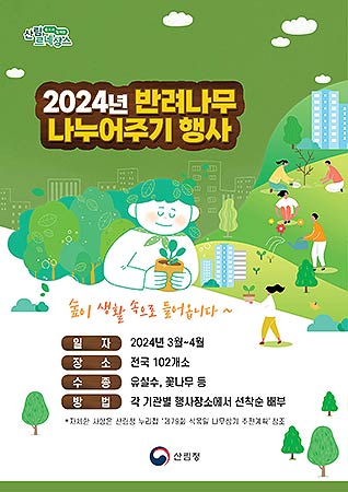 산림청(청장 남성현)은 제79회 식목일을 앞두고 전 국민이 나무를 심고 가꾸는 분위기 조성을 위해 4월 말까지 ‘반려나무 나누어주기’ 행사를 전국적으로 실시한다고 11일 밝혔다.