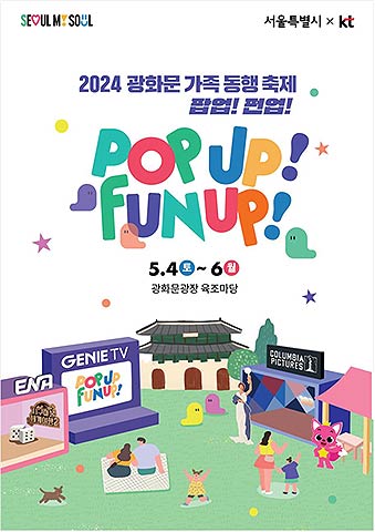 서울시는 가정의 달을 맞아, 지니 TV(KT)와 함께 온 가족이 즐길 수 있는 [2024 광화문 가족 동행 축제 ‘팝업! 펀업!’]을 개최한다고 밝혔다. 5월 4일부터 6일까지 매일, 오전 11시부터 오후 5시까지 운영하며, 대상을 가족으로 확대해 더욱 풍성한 볼거리와 이벤트를 준비했다.
