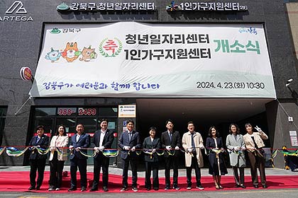 강북구1인가구지원센터(덕릉로 28길 28)는 지난달 23일 확장 이전 개소식을 갖고, 1인가구 서비스를 강화하기 위해 개인 및 집단상담, 생활·여가문화 프로그램, 1인가구 고립 방지를 위한 사회적 관계망(자조 모임) 프로그램 등을 확대 운영하고 있다.