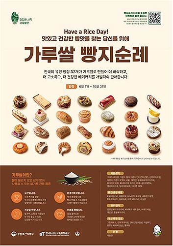 농식품부는 가루쌀 신메뉴를 홍보하고, 가루쌀에 대한 소비자들의 친밀감을 높일 수 있도록 ‘빵지순례 이벤트’를 추진한다. 6월 1일부터 10월 31일까지 진행되는 빵지순례는 가루쌀 빵 구매를 인증한 소비자를 대상으로 추첨을 통해 다양한 상품을 제공할 예정이다. 이번 빵지순례 이벤트에는 올해 가루쌀 제과·제빵 신메뉴 개발 사업 참여업체 30곳과 성심당, 홍두당이 참여하며(붙임1), 이벤트 내용은 아래와 같다.