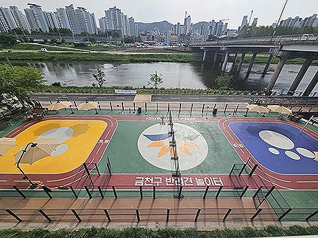 금천구(구청장 유성훈)는 시흥대교 하부(시흥동 784-21)에 반려인과 반려견이 함께 마음껏 뛰어놀 수 있는 '금천구 반려견 놀이터'를 조성해 운영한다고 밝혔다.