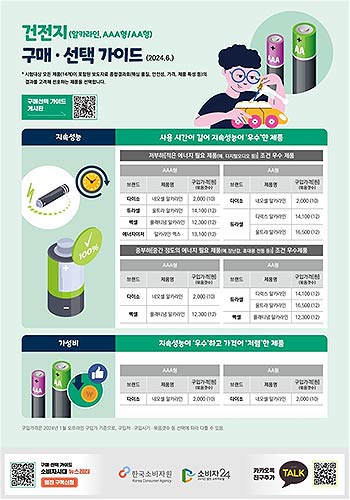 이에 한국소비자원(원장 윤수현)이 시중에 유통 중인 알카라인 건전지 14개 제품의 품질(지속시간)·안전성(내누액, 중금속함량)·경제성(충전식 전지 비교) 등을 시험평가했다.