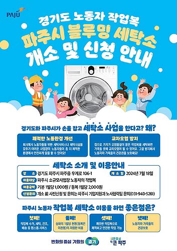 노동자 작업복 전문 세탁소인 경기도의 '블루밍세탁소 3호'가 오는 18일 파주시에 문을 열 예정인 가운데 정식 개점에 앞서 무료 임시 운영을 시작한다.