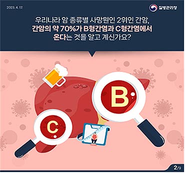 * 연령별 간암 사망률 : (40대) 2위, (50대) 1위, (60대) 2위(※’22년 사망원인 통계, 통계청)