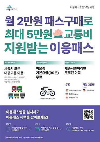 세종시에 거주하는 시민이면 누구나 구입·이용할 수 있고 청소년, 70세 이상 어르신, 장애인 등은 무료다.